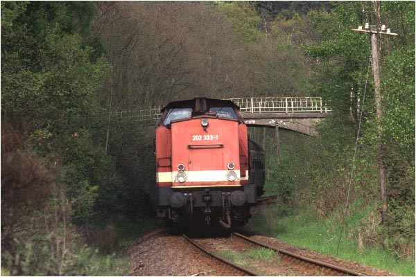 KBS 177: 202 333 mit der RB 15637 an der Straßenüberführung bei Jettchenshof (19.05.96)