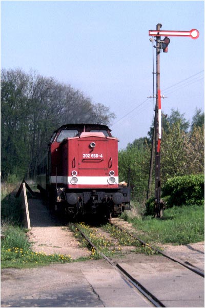 KBS 177: 202 666 mit der RB 15633 Ri. Malchin am Esig Neukalen (18.05.96)