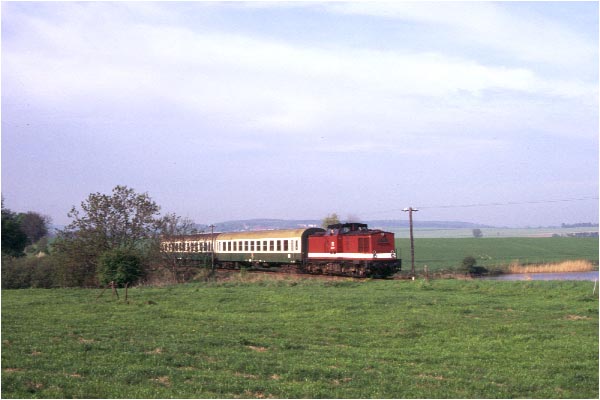 KBS 177: 202 272 mit der RB 15632 Ri. Dargun kurz vor Schorrenthin (19.05.96)