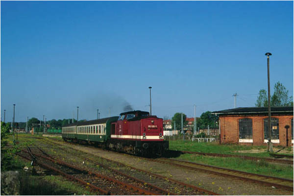 KBS 187: 202 326 verlässt mit RB 16607 den Bahnhof Neustrelitz Süd in Richtung Feldberg (Meckl) (10.05.98)