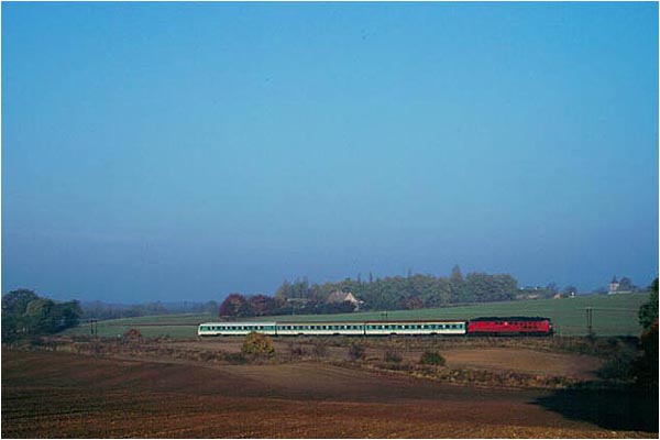 KBS 209.26: Eine 234 mit RB 5809 hinter Müncheberg (Mark) in Richtung Küstrin-Kietz. Im Vordergrund verläuft die ehem. Trasse der Kleinbahn nach Müncheberg (Mark) Stadt (26.10.96)