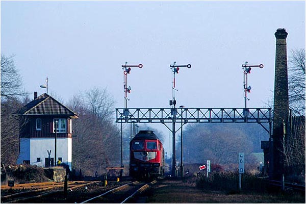 KBS 209.26: 234 339 erreicht mit RB 5812 den Bahnhof Müncheberg (Mark) (30.12.97)