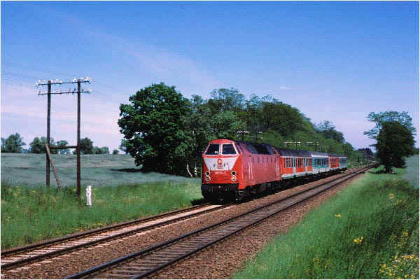 KBS 209.26: 219 154 mit RB 5818 am 25.05.01 in km 56,5 zwischen Alt Rosenthal und Trebnitz (Mark) in Richtung Berlin Provia 500/6.7/50 mm