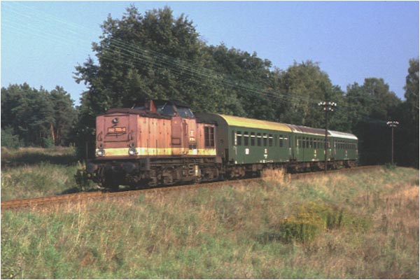 KBS 209.36: 202 705 mit ihrem Personenzug kurz vor dem Hp Kablow (11.10.94)