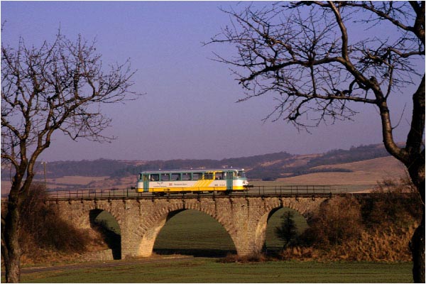 KBS 587: VT 2.19 als RB 96708 auf dem Viadukt vor Grockstädt (30.12.98)