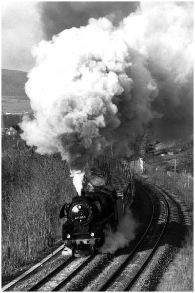 KBS 556: 41 1185 mit Ng 63302 auf der Rampe zwischen Saalfeld und Unterwellenborn (18.02.95)