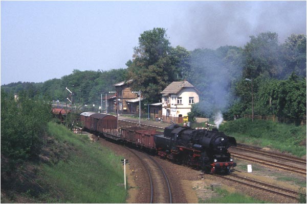 KBS 209.40: 52 8177 verlässt den Bf Grunow (NL) in Ri. Cottbus (01.06.96)